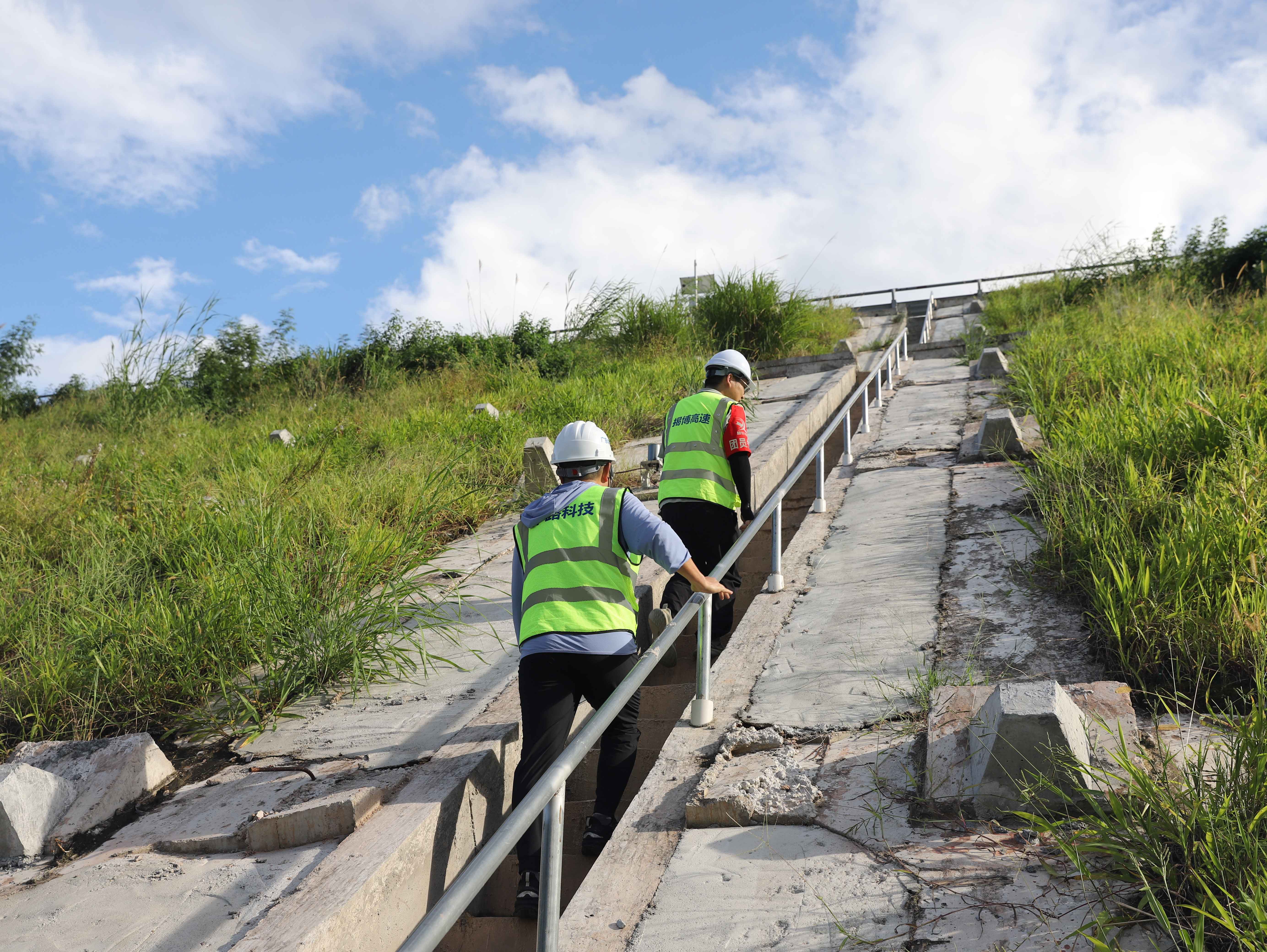 揭博高速路政工作人员在检查边坡(摄影:李婧灵)