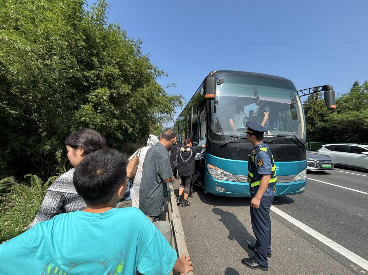10月8日上午,一辆满载乘客的贵C大客车因故障停靠在往广州方向怀集段慢车道,广贺高速监控中心发现后立即通知保畅机动支援队。为保障乘客生命安全,保畅机动支援队与怀集县交通运输局同步协调转运大巴车,仅用30分钟便抵达事故现场,顺利完成滞留人员转接工作。
