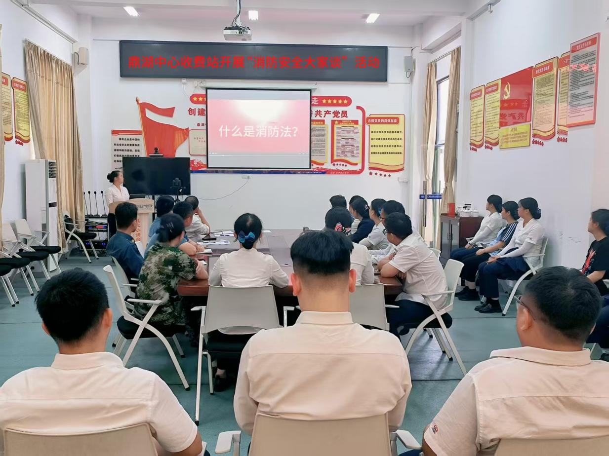 在鼎湖中心站举办的“消防安全大家谈”小课堂上,员工们围坐在一起,安全员结合《中华人民共和国消防法》条文和警示教育片中的真实案例,围绕办公区域插线板使用规范、宿舍用火用电禁忌、收费站亭内电器设备维护等内容,把日常工作生活中的消防隐患“摆上台面”。