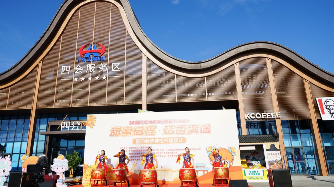 12月16日,广东交通集团所属广贺高速四会服务区内桔香四溢,“甜蜜启程・桔香满途 —— 四会沙糖桔开售”主题活动火热启幕。