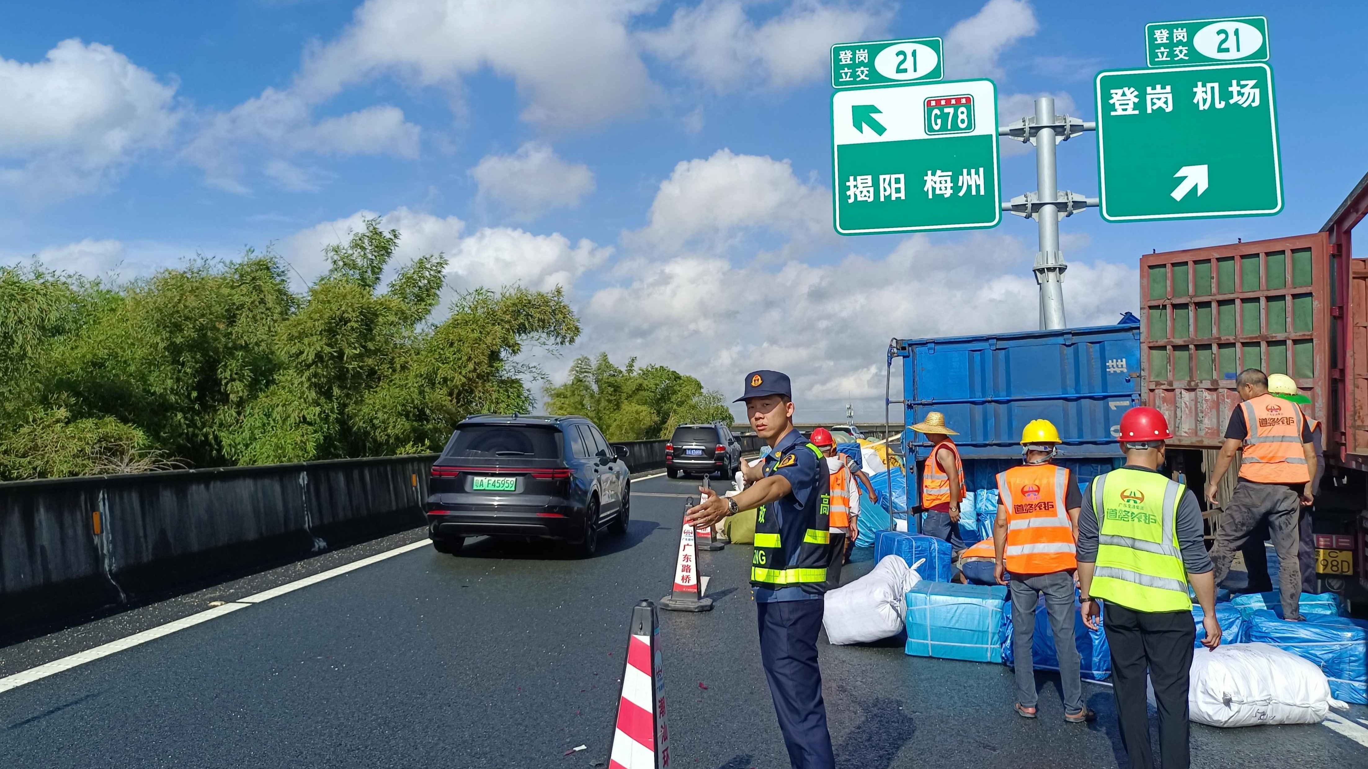 货车高速“甩柜”,潮汕环线高速多方联动化险情