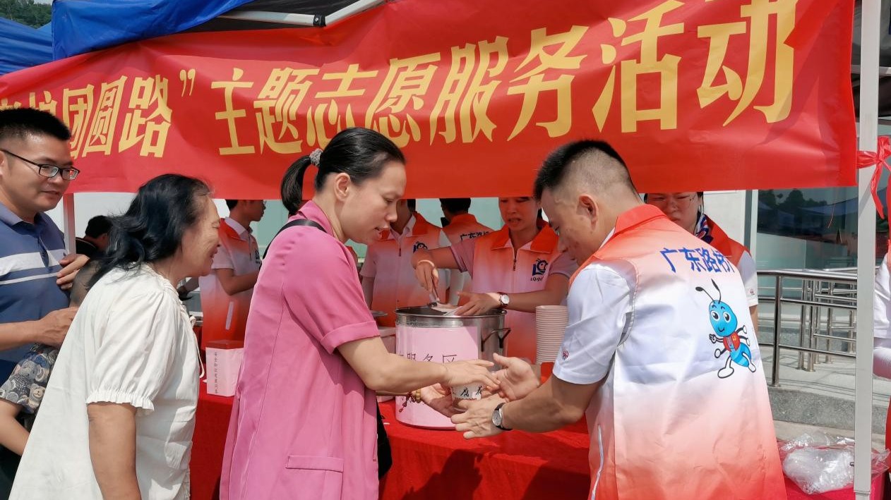 国庆假期,广佛肇高速鼎湖山服务区一改往日匆匆歇脚点的模样,“小蚂蚁”志愿者们精心布置了豆腐花品鉴、非遗手工拓印等三大活动区,让旅途间隙变成充满家国情怀和人间烟火气的“团圆小驿站”。