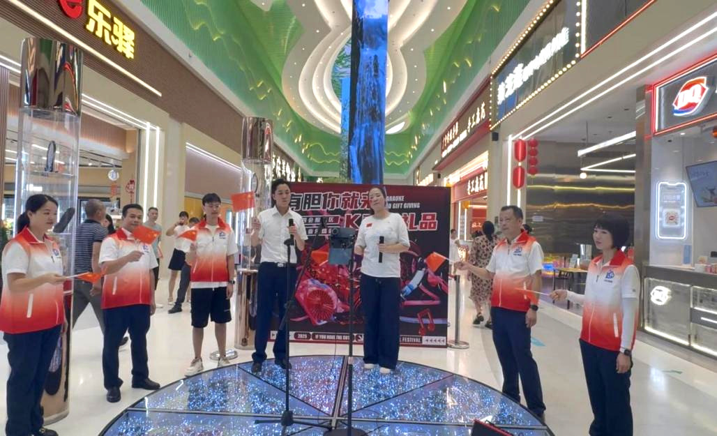 10月1日,广贺高速四会服务区内响起了嘹亮的歌声,“小蚂蚁”志愿者和过往司乘手拿小国旗,将对祖国的热爱融入歌声里。