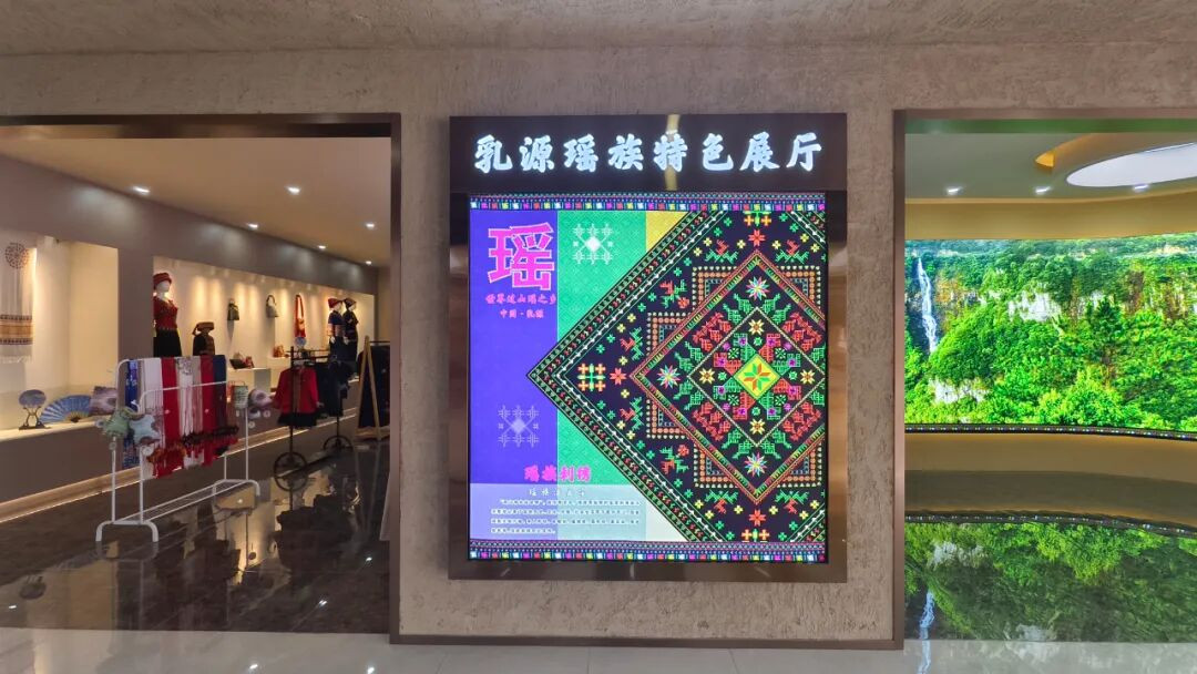 在展厅设置上,东区围绕“非遗瑶绣”主题,利用灯膜投射瑶绣纹样,并引入传统服饰展、互动屏,让司乘近距离感受瑶绣魅力。西区突出瑶医瑶药特色,通过科普墙和动态投影,展示瑶药的采摘、制作过程及功效特性。