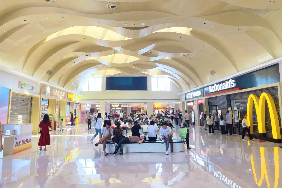 综合楼内,餐饮、购物、休息等配套设施一应俱全。72街、麦当劳、猫屎咖啡等餐饮品牌环伺中庭,为旅客提供多元选择。开业首日,服务区“司机之家”也同步开放使用,提供24小时免费热水淋浴、洗衣休息等便利;卫生间引入智慧系统,实时监测环境并优化男女厕位比例至1:1.5,增设了无障碍设施。