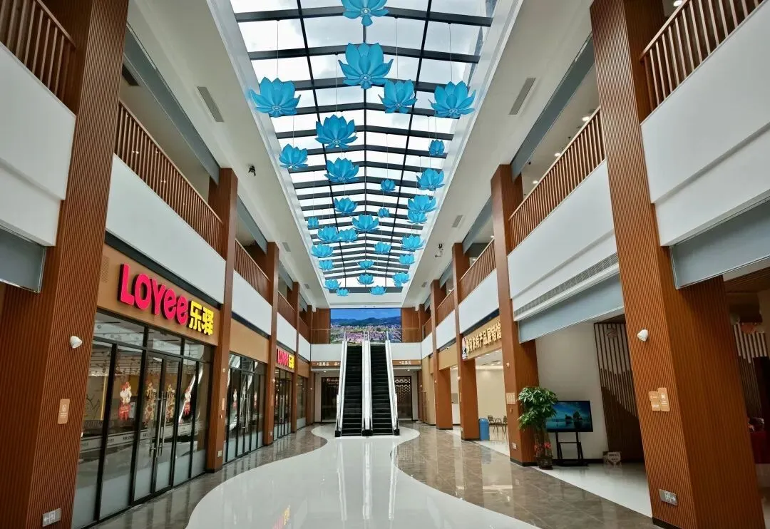 室内园林景观综合楼首层还预留地方特产与文化展陈区域,用于展示河源农产品与非物质文化遗产,实现文化推广与产业促进相融合。