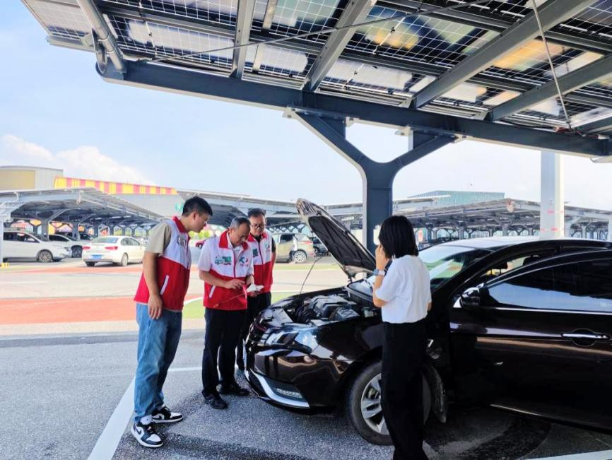 “我的车子刚才一着车,排气管就冒出浓浓白烟,这是咋回事呀?”在大槐服务区活动现场,一名车主焦急地向“安全宣讲轻骑兵”求助。志愿者立即上前,在询问和检查中得知,车主在服务区停留时因补充机油过量,发生了“烧机油”情况。“多亏你们‘把脉问诊’,我这就下高速维修。”车主连声道谢。