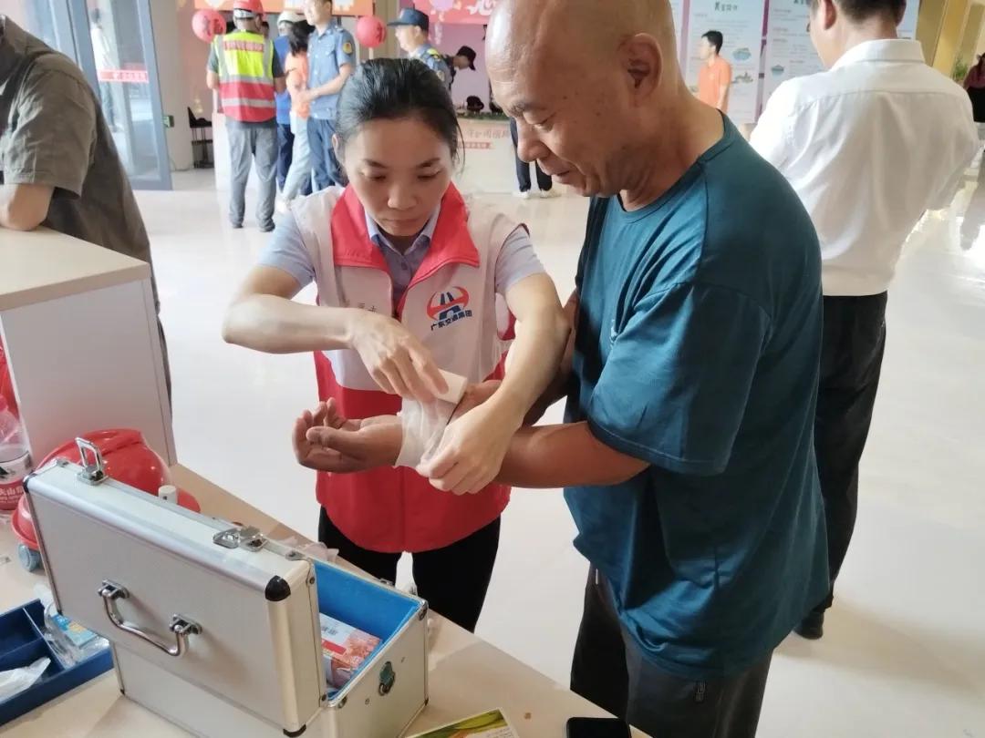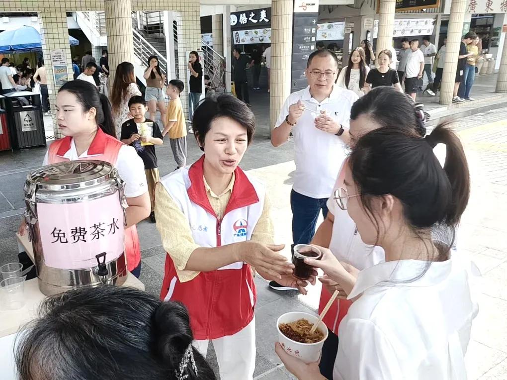 粤北分公司黎溪服务区上演“紧急救援”。志愿者为手腕渗血的张先生清创包扎,从生理盐水冲洗到碘伏消毒、防水敷料粘贴,全程细致入微。“你们比家人还贴心!”张先生连连道谢。休息区的凉茶保温桶前,志愿者主动为候车旅客递上热茶,驱散旅途燥热。