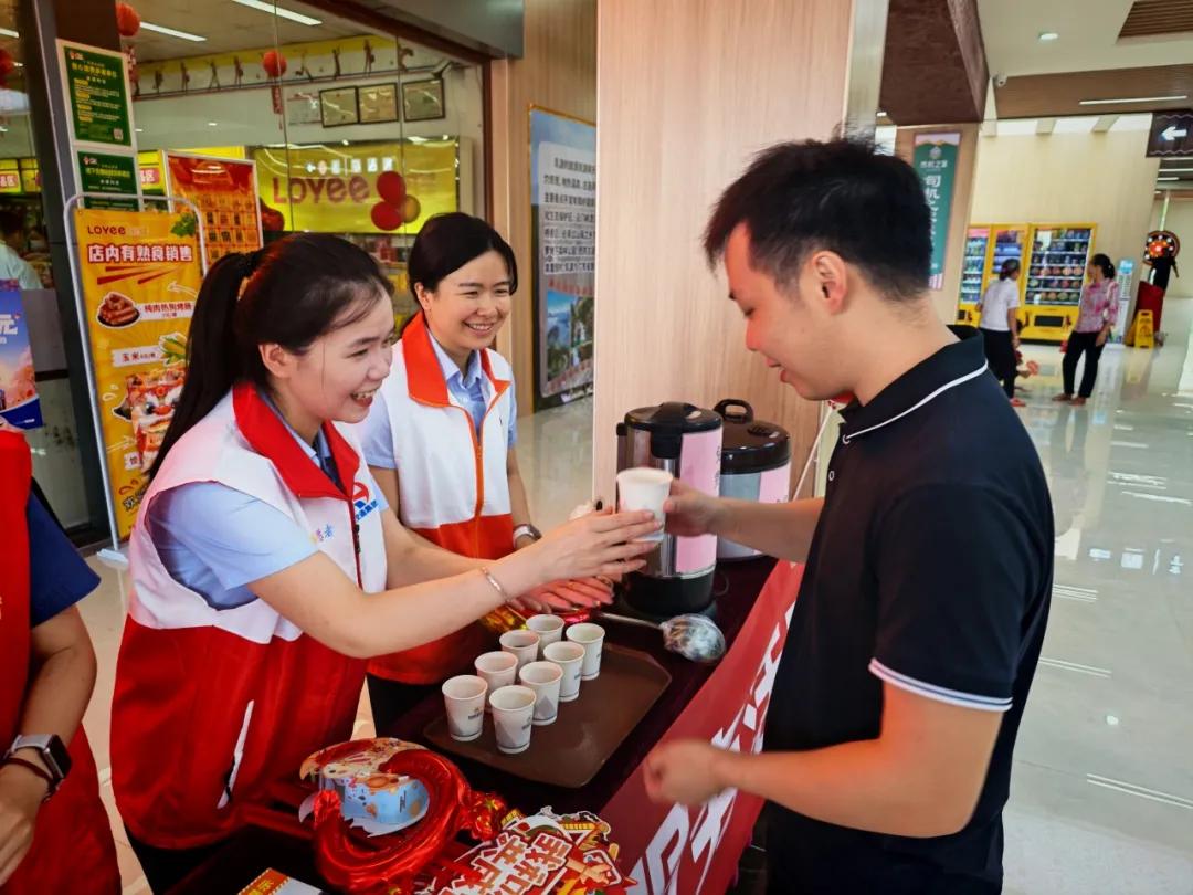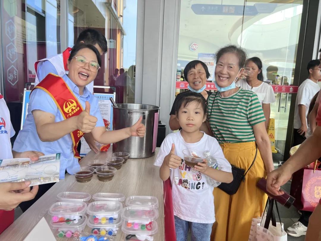 粤西分公司在开阳高速梁金山、圣堂、大槐、阳江服务区推出趣游集章活动,参与活动可在上述服务区领取旅行册,以及兑换变脸公仔、植物盆栽盲盒等文创礼品,吸引了不少旅客参与打卡。此外,志愿者熬制的绿豆糖水,搭配防蚊灭蚊宣传,让“甜蜜守护”直抵人心。