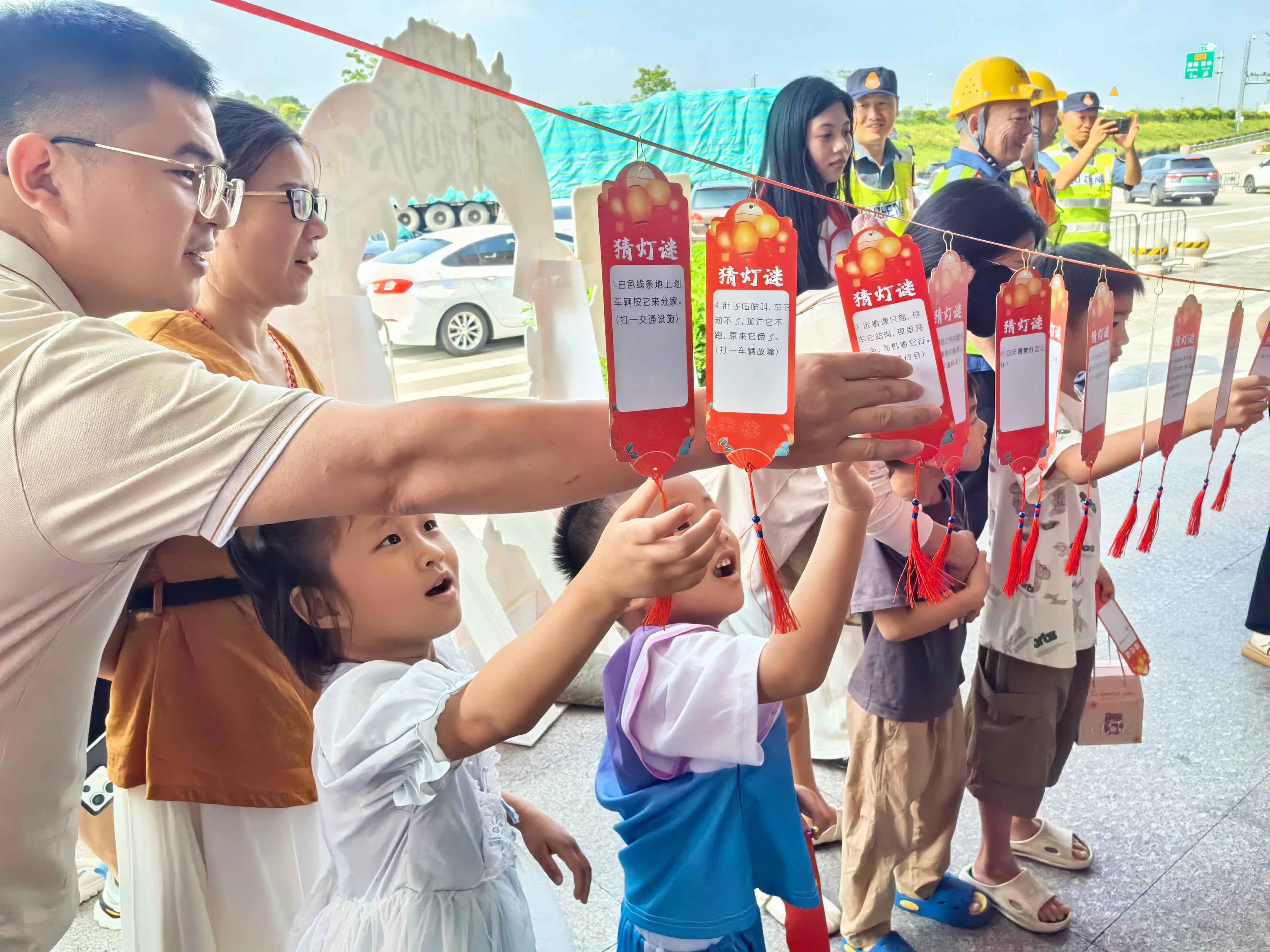 四会服务区猜灯谜现场,“举头望明月(打一中药名)”引发亲子抢答,答对者收获小兔子灯笼;一旁的舞台上,志愿者们红歌合唱《我和我的祖国》点燃爱国热情;横荷服务区的“流动舞台”上,民族舞翩跹,灵动舞姿让过往旅客纷纷驻足,嘴角满是笑意。址山、沙溪、中山、雅瑶服务区更将非遗漆扇、手工制陶体验搬进服务区,让旅客在动手实践中感受传统文化魅力。