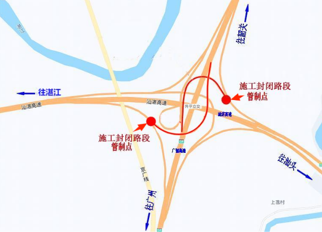 需重点关注的是,因G4京港澳高速公路粤境段改扩建工程(南段)施工需要,惠清高速升平立交往湛江方向转京港澳高速广州方向匝道、往汕头方向转京港澳高速韶关方向匝道已实施封闭施工。目前导航系统已更新实时绕行方案,途经车辆请提前规划路线,预留充足通行时间。