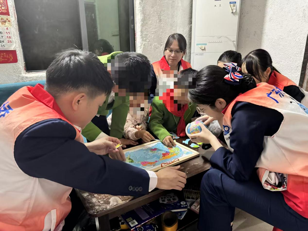 活动当天,志愿者一抵达,小添就带着弟弟妹妹热情迎上前。接过礼物后,孩子们难掩兴奋,围着志愿者好奇询问书籍内容,还与志愿者一同动手拼接世界地图。拼图过程中,志愿者还为孩子们讲解各国风土人情。交流期间,志愿者还关切询问孩子们的身体与学习状况,叮嘱他们天气转凉注意添衣保暖,针对小添作业中的错题更是耐心细致地答疑解惑。小添家长也欣慰地分享着孩子近期的进步,现场充满温情与暖意。