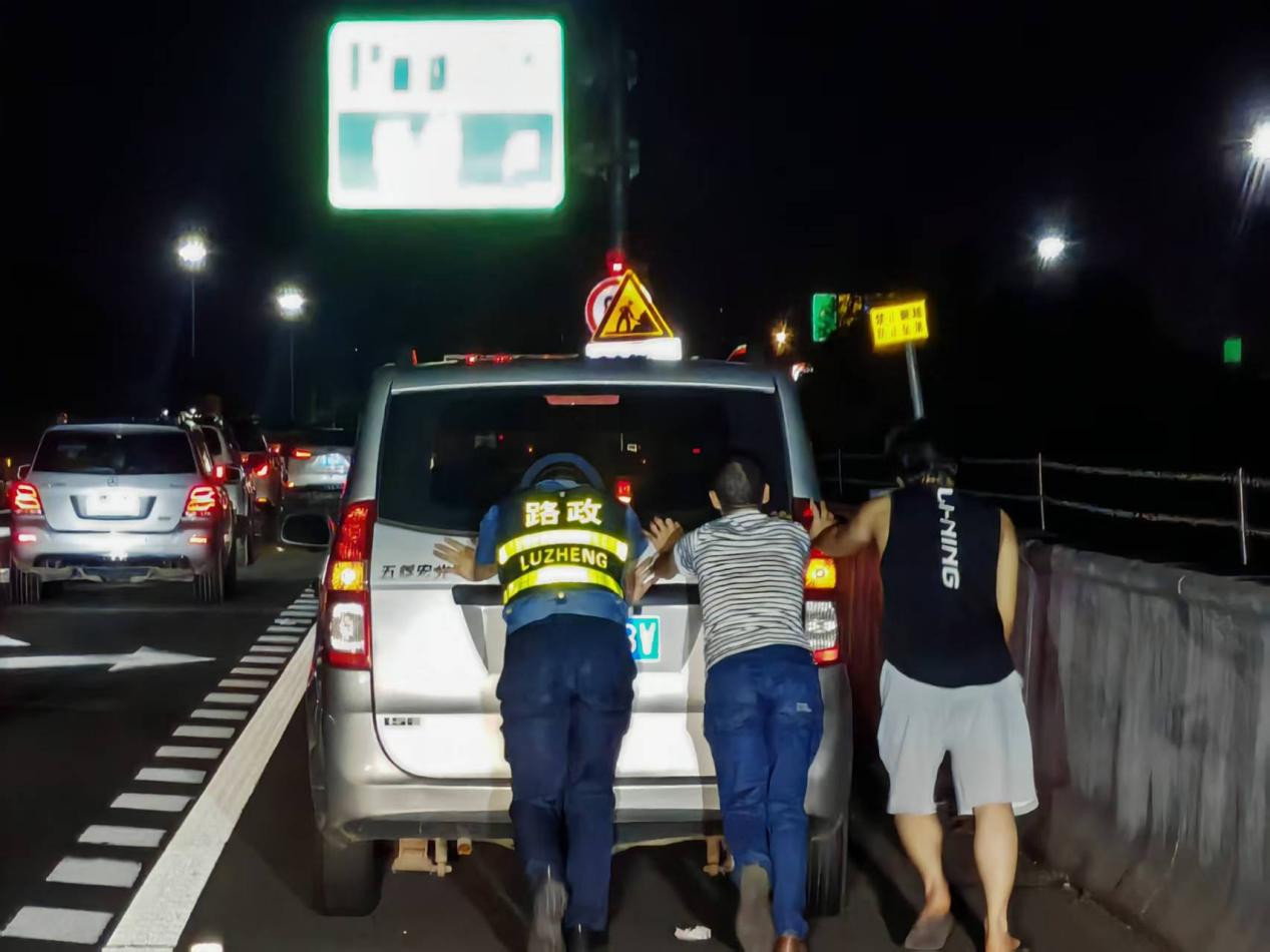 了解情况后,张子奇、申科立即联系粤运拯救单位赶赴现场;同时,协助车上三名司乘人员将车辆推至紧急停车带。